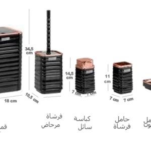 طقم حمام لونا مربع 5 قطع | نحاسي- أسود