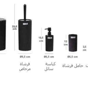 طقم حمام مينا مدور 5 قطع | أسود
