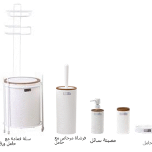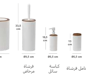 طقم حمام مينا 5 قطع | خشبي – أبيض