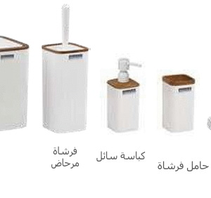 طقم حمام مينا مربع 5 قطع | خشبي – أبيض
