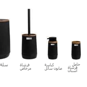 طقم حمام مينا مربع 5 قطع | خشبي – أسود