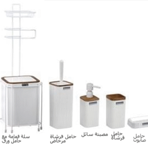 طقم حمام مينا مربع 6 قطع | خشبي – أبيض
