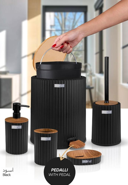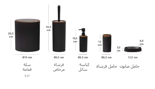 • طقم حمام مينا مدور 5 قطع | خشبي - أسود