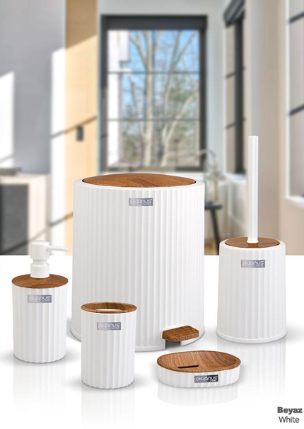 طقم حمام مينا 5 قطع | خشبي – أبيض