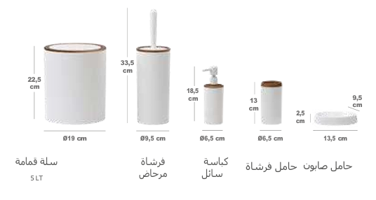 • طقم حمام مينا 5 قطع | خشبي - أبيض