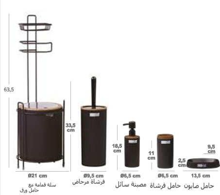 طقم حمام مينا مربع 6 قطع | خشبي – أسود