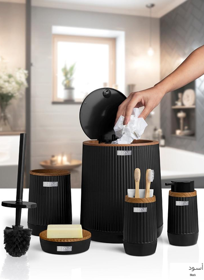 طقم حمام مينا مربع 6 قطع | خشبي – أسود